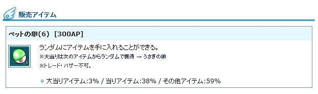 「ペットの卵(6)」の大当たりからは、可愛らしい「ウサギ」型のペットに進化する「ウサギの卵」が手に入ります!