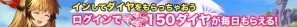 1日1回、ログインした際に【150ダイヤ】を獲得できます。獲得したダイヤは、ゲーム画面上部のプレゼントBOXに届きます。