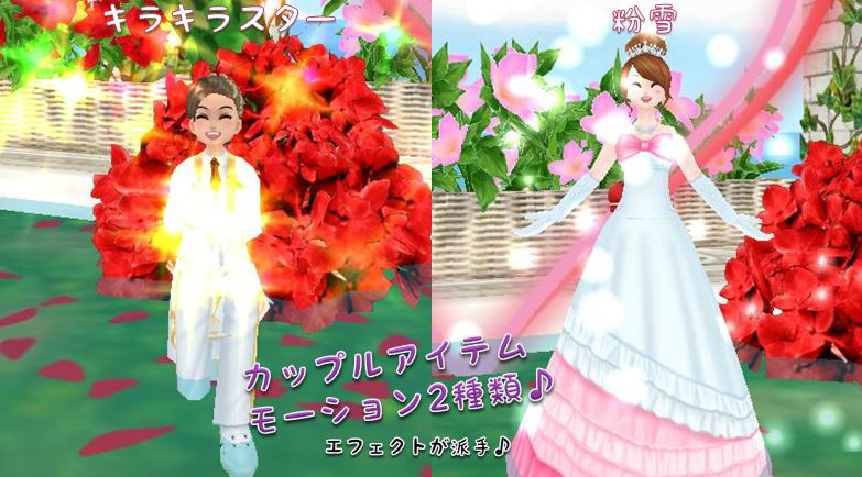 イベント期間限定の告白指輪と告白用花束を使って、愛を誓いましょう。今週は新しい告白用モーションが追加され、エフェクトの演出も出るようになっております。