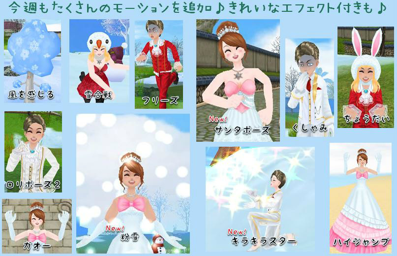 新規着用アイテム「オーロラウィング」「スノージェエルウィング」や、新モーションの「スノーシャワー」などが追加され、より楽しく遊ぶことができます。