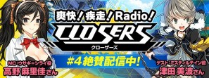 相性抜群の二人の掛け合いが繰り広げられる「爽快!疾走!Radio!「CLOSERS」」に是非ご期待ください。番組では各コーナー、パーソナリティやゲストへのメッセージなど、メールを大募集しています。番組のメール投稿フォーム、もしくはメールアドレスへご感想をお送りください。