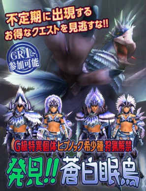 カプコンは、「モンスターハンター フロンティアG」において、本日12月9日より狩猟解禁イベント「発見!!蒼白眠鳥」を開始した。