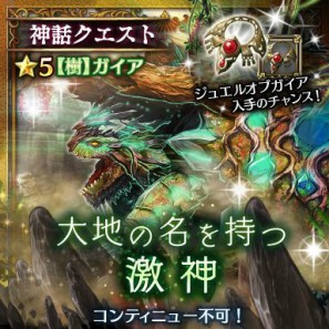 2015年12月10日(木)定期メンテナンス後から、神話クエストの「ガイア」を倒せば装備品「ジュエルオブガイア」などを入手するチャンスがありますので、ぜひ挑戦してください!