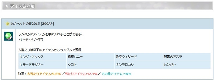 「融合ペットの卵 2015」がエンジェルモールに追加