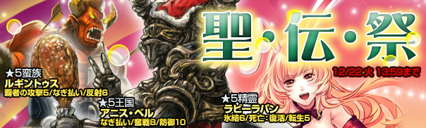 「聖・伝・祭」を1回利用する毎に、サンタ界のアイドル謎の美女★5「ルーチェの欠片」×1をプレゼント!