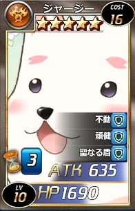 1度だけ自身のHPが0になる攻撃を受けたターンの間、HP1になりすべてのダメージとスキルを無効化する。(粉砕、転送を除く)