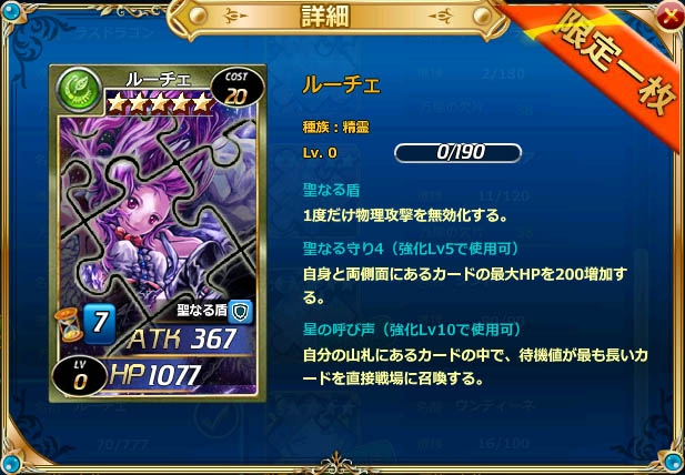 ※★5「ルーチェ」を合成するに★5「ルーチェの欠片」777個が必要です。