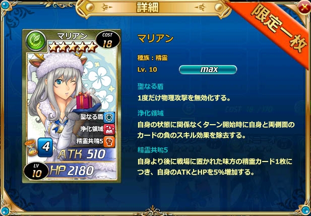 新カードパック「聖・夜・祭」を100回利用するまでの間に、必ず★5のカードが1枚以上確定で出現いたします!一度★5のカードを獲得した後も、再度100回★5保証が付きます。