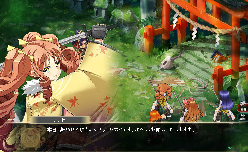 公国レマルギア北東・絶海の孤島に漂う転移門の一つ…「鬼門」。その鬼門の空間の乱れを整え、正常化させる事ができるのは、甲斐家による麗しき舞踏の力。姉イオリが見届ける中、ナナセは甲斐家の名と共に神事へ臨む。華麗なる乙女よ、いざ舞わん!