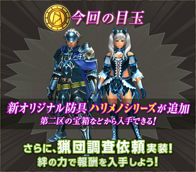 また、期間中に防具一式をそろえることで、オリジナル防具「ジェスG」「リアルオG」「レウアスG」シリーズの生産素材も入手できるので、ふるってご参加ください!