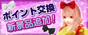 2016年1月14日(木)アップデート後より、鬼ヶ島の「ぽいんとだるま」の景品交換に、新規アイテムを追加いたします。今回はとってもキュートなリボン3色が追加になります。