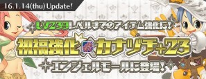 2016年1月14日(木)定期メンテナンスにて、エンジェルモールにお気に入りの武器や防具を強化できる「祝福強化カナヅチ+23」を常設販売として追加いたしました。
