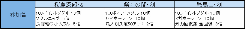 また参加賞としまして、期間中に対象のダンジョンをクリアしたキャラクターには、ランキングに関わらず以下のアイテムをお送りします。