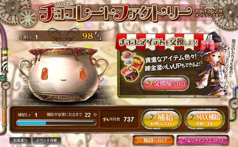 1月29日(金)メンテナンス後~2月19日(金)メンテナンスまで、「かんぱに☆チョコレートファクトリー」を開催いたします!