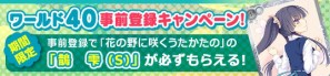 期間中ワールド40に事前登録していただいた方全員に、「花の野に咲くうたかたの」の「鵲雫(S)」をプレゼント!