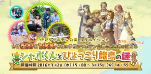 サクセスは、「楽園生活 ひつじ村 大地の恵みと冒険の海」において、本日3月2日より伊豆シャボテン公園とのコラボレーションイベント「シャボくんとひょっこり諸島の謎」を開始した。
