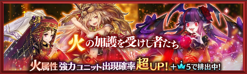 火の加護を受けし者たちガチャは、☆4以上のユニットは火属性のみ出現!火属性ユニット獲得の大チャンスを見逃すな!
