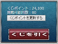 公式サイトにログインすると画面左にWEBくじのメニューが表示されます。ゲーム内でクエストに挑戦しAPを消費すると、消費したAPに応じてくじポイントがたまります。300くじポイントにつき、1回くじを引くことができます。