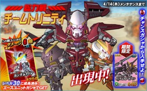 3月31日(木)12時より、「SDガンダムオペレーションズ」総力戦において、「チームトリニティ」が登場しております。「チームトリニティ」には、期間中任務実行した際に稀に遭遇することがあります。