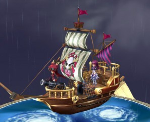 B賞には、「海賊のアジト」「大渦の床」やライドパートナー「海賊船・マーチャント号」が登場。飛空庭を荒ぶる大海のように演出したり、海賊気分を味わうことができます。