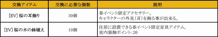 「[EV]枯れない桜の花びら」をイベント限定アイテムと交換しよう!