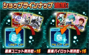 4月14日(木)12時より、「SDガンダムオペレーションズ」において、「倉庫ユニット所持数」と「倉庫パイロット所持数」が、ショップ内の販売アイテムに追加されました。