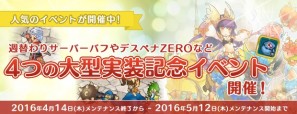 2016年4月14日(木)定期メンテナンス後から、4つの大型実装記念イベントを開催いたします。