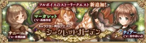 新シリーズのキャラクターが活躍するストーリークエストが登場。秘密の庭に生きる三姉妹の物語が展開されます。