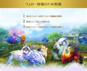 サービス開始から一周年を記念して行われる「牧場~フェローが飛び交う緑の大地~」アップデートでは、新たなコンテンツ「フェロー牧場」が実装されます。