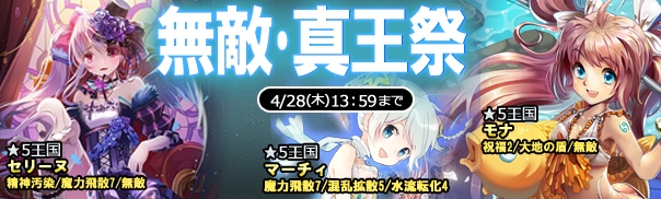 新カードパック「無敵・真王祭」を100回利用するまでの間に、必ず★5のカードが1枚以上確定で出現いたします!一度★5のカードを獲得した後も、再度100回★5保証が付きます。