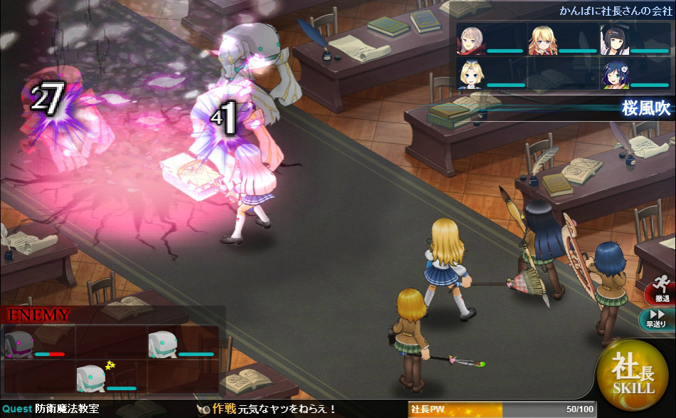 「かんぱに☆春イベント~魔法学校と不思議のエセリアル~」のイベント武器が登場します。イベント武器を身に付けると社員が可愛いコスチュームに変化し、さらに新スキルが使えるようになります。