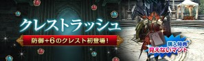 今回は、物理防御+6の性能を持つ「守のクレスト・改」が登場!さらに、着飾り装備に便利な「透明なオーバーウェア」がもらえる「購入ラッシュキャンペーン」を同時開催いたします。