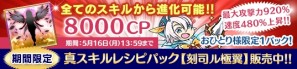 期間限定!「真スキルレシピパック【刻司ル極翼】」を8000CPで販売!真「刻司ル極翼」レシピVol.1に召喚くじ プラチナチケット12枚付き!ショップ内「アイテム屋」でご購入できます。