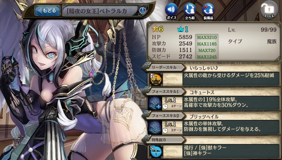 - 進化前・後で、味方全体に最大で52%の「攻撃力をアップする」スキル持ちのユニットとなる!幻獣-契約で、相手の防御力を無視して「単体攻撃」するスキル持ちのアタッカーとなる!