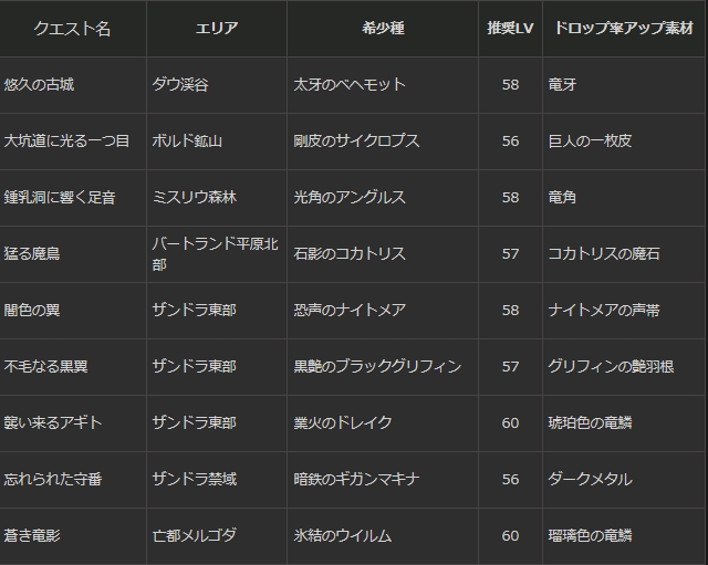 「希少種モンスター」は、希少素材のドロップ確率が2倍になったモンスターです。
