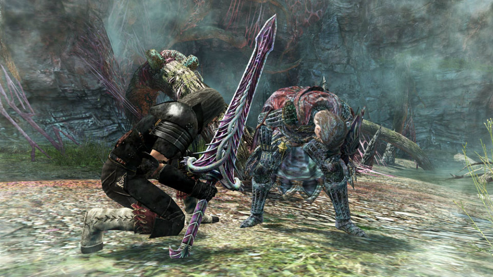しがみついた状態で勢いよく大剣を突き刺し、体を上下に揺さぶりながら抉ることで、攻撃と同時に敵のスタミナを奪う。連打することで揺さぶり回数が増加する。