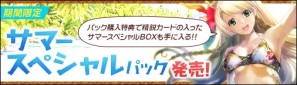 2016年6月22日(水)メンテナンス終了後~2016年6月29日(水)11:30までの期間中、サマースペシャルパックをDGで20回購入するごとに「クエスト」の「イベントクエスト」タブに表示されるクエスト「サマースペシャルBOX」から「サマースペシャルBOX」を受け取れます。