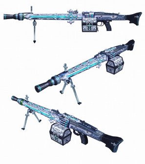 200発の50口径特殊聖水弾を使用するマシンガンである。着弾すると聖水弾が破裂し、範囲内のゾンビに強力なダメージを与える。