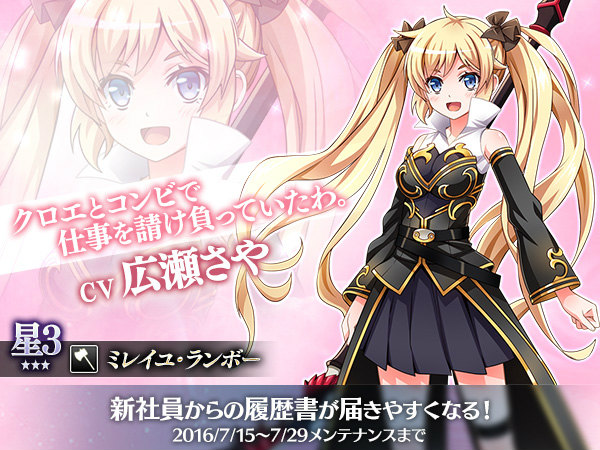 ファイター系☆4の「テロワーニュ・デルベ」、ウォリアー系☆3の「ミレイユ・ランボー」2人の社員が新たに登場します。