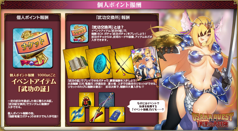 冒険者イベント「OSAKA QUEST-夏の陣- 伊達の大冒険」のポイント報酬