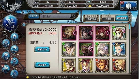 不要なユニットを送り出すと「交易pt」に交換が可能!