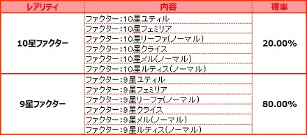 「ヴァナート 10」「イリスト 10」「アガエナル 10」からは、複数のストライカーの中からランダムでファクターを1体獲得することができます。