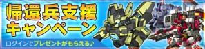 帰還兵支援キャンペーンとして、いつでもおかえりキャンペーンのプレゼント内容変更のお知らせです。最終ログインから30日以上経過した方へログイン時に素敵なプレゼント。