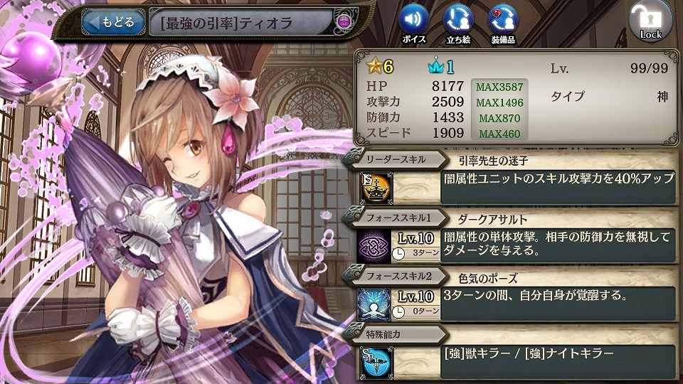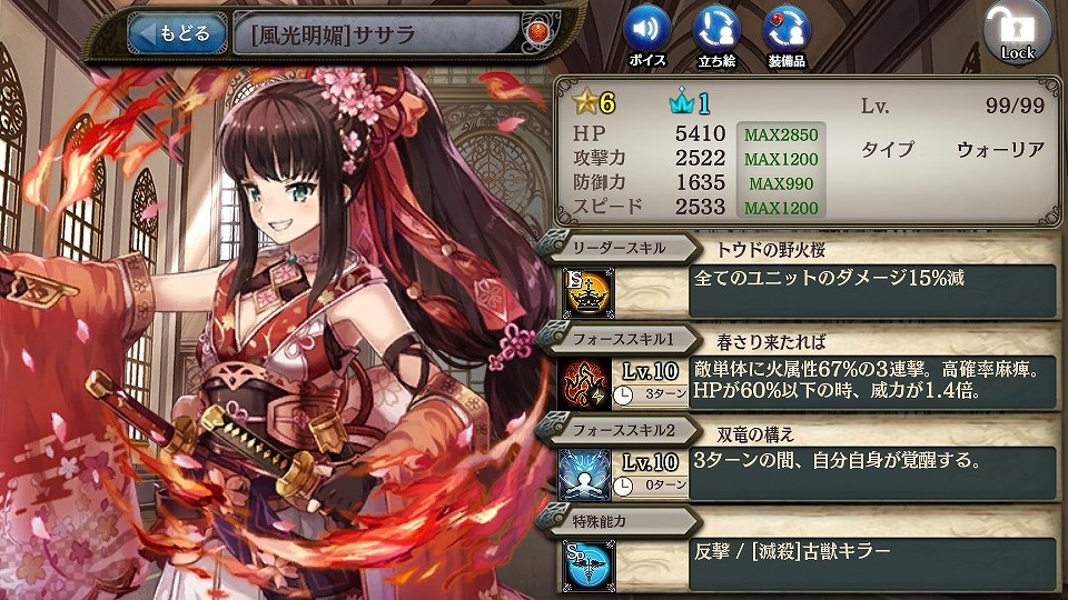 - スキル1に、味方全体の「攻撃力/クリティカル率」をアップする支援スキルを所持!