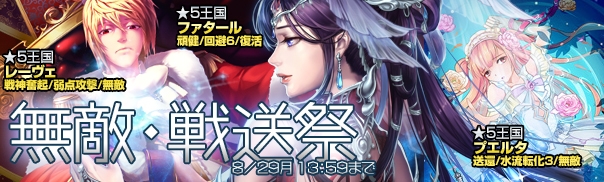 新カードパック「無敵・戦送祭」を100回利用するまでの間に、必ず★5のカードが1枚以上確定で出現いたします!一度★5のカードを獲得した後も、再度100回★5保証が付きます。