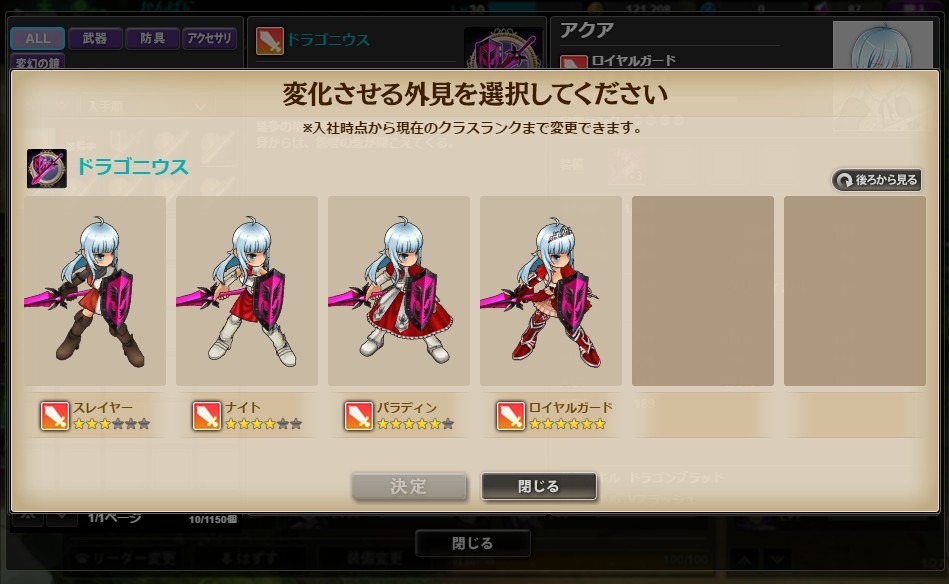 変幻の鏡を素材に加え装備をつくることで、ステータスやスキルはそのままに、見た目が好きな衣装のものになるアイテム「変幻の鏡」が登場します。「変幻の鏡」はログインボーナスやショップ等で入手することができます。