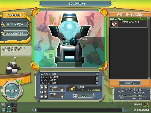 1Mt、ゴールドロボニウム×1個、投票券×1個