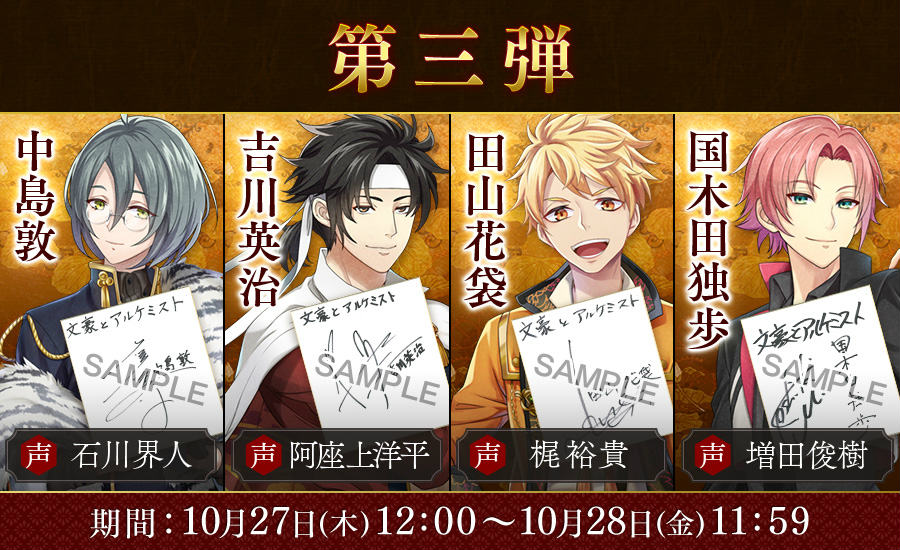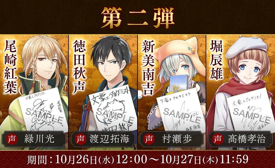 11月1日にリリースを控え盛り上がりを見せる「文豪とアルケミスト」はその勢いを止めることなく、公式Twitter利用による事前登録キャンペーン追加企画を発表いたします。