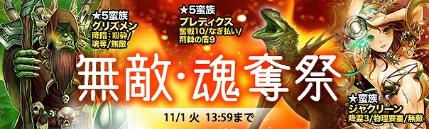 新カードパック「無敵・奪魂祭」を100回利用するまでの間に、必ず★5のカードが1枚以上確定で出現いたします!一度★5のカードを獲得した後も、再度100回★5保証が付きます。