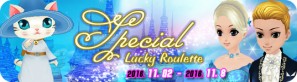 今週のラッキールーレットでは、「シンデレラタイム」が設定されております。「シンデレラタイム」では、「☆舞踏会ドレス(スーツ)」や「お友達の素_ウィザードキャット」に加え、高属性アイテム「魔法の舞踏会ドレス(スーツ)」が獲得可能です。